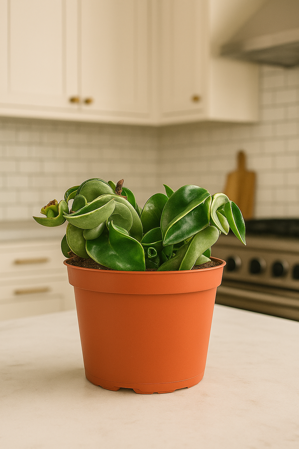 Hindu Rope (Hoya carnosa compacta variegata), also known as Porcelain Flower, Wax Plant, Honey Plant, or Krinkle Curl, is native to the warm, humid forests of southern India and Southeast Asia. It grows epiphytically among tree branches, where filtered sunlight, frequent rain, and moving air sustain its slow but steady growth.